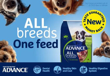 Give your pet the best with ADVANCE, a range of super premium dog and cat food made predominantly in Australia. With over 50 years of experience in pet nutrition, ADVANCE uses the latest scientific knowledge and high-quality Australian ingredients to create formulas that support your pet's health and wellbeing.