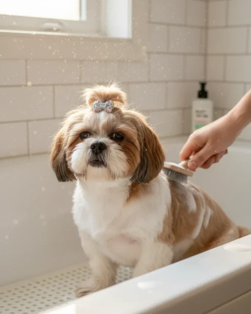 Proper grooming products are vital for the Shih Tzu to manage their high-maintenance coat and prevent painful matting.