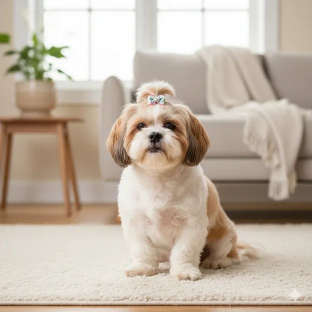 The Shih Tzu coat requires daily brushing to remain tangle-free, so a high-quality slicker brush and a metal comb are non-negotiable tools for every owner. Regular bathing with a moisturising shampoo and conditioner helps maintain the silky texture of their hair and supports skin health. Because their hair grows continuously, professional grooming is required every 4 to 6 weeks. At home, owners should also focus on trimming the hair around the eyes to prevent irritation and keeping the hair between the paw pads tidy to prevent slipping.
