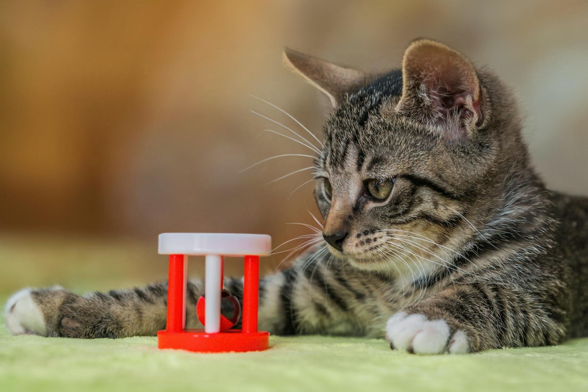 Stimulate your cat's natural hunting instincts with puzzles, snuffle mats, lick mats and electronic interactive toys. They are a great way to keep your cat occupied and active while you aren't home to play with them one on one. Just be sure to rotate them often to keep your cat from getting bored.
