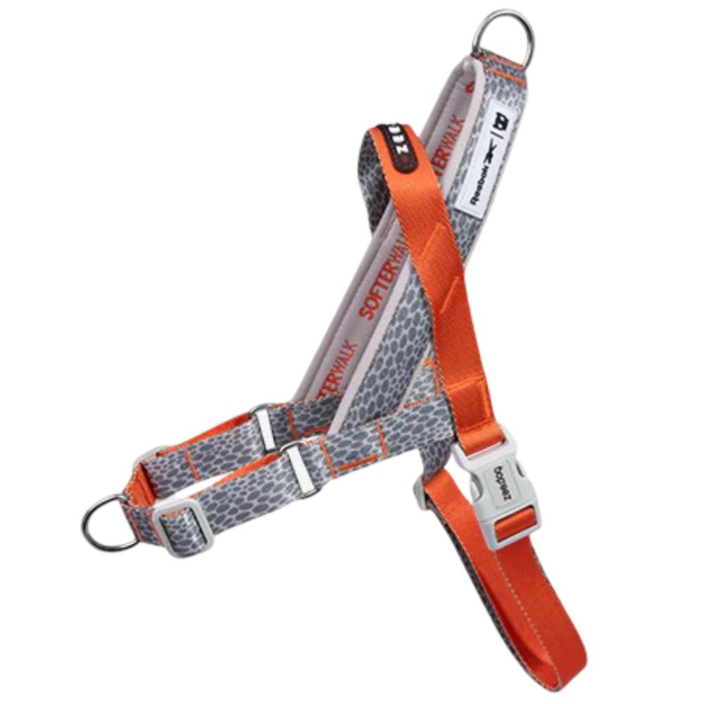 Step in harnesses can be a bit fiddly to put on particularly if your dog is dancing around in excitement in anticipation of a walk. Your dog needs to put their front legs into the two loops then a single clip fastens the harness on top of your dog's shoulders. Apart from being an excellent opportunity to practise your dog's impulse control training, the step in harness has many benefits. The most important is that the step in harness distributes lead pressure across your dog's chest and shoulders and reduces or eliminates choking if they pull on the lead. These harnesses are also terrific for dogs who have learned how to back out of their harness.