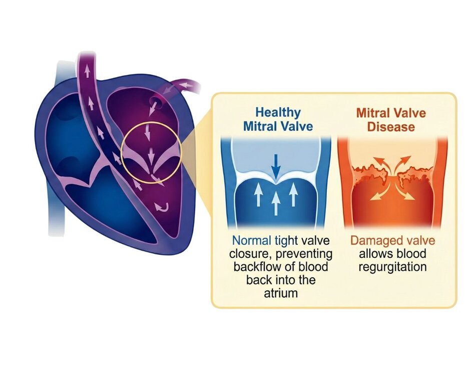 Mitral valve disease is the most frequent heart condition diagnosed in small dogs. To understand how it works, it helps to picture the heart as a pump with four distinct rooms.