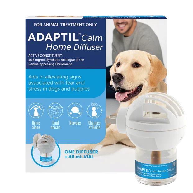 - Adaptil Diffuser: perfect for indoor "safe havens," releasing the calming pheromone into the room where your dog spends the most time.
