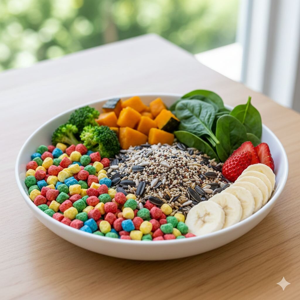 While pelleted diets have clear advantages, it's not as simple as placing a bowl of pellets in the cage and expecting your bird to start eating them, especially if they have been on a predominantly seed-based diet for a number of years. It's like feeding a child chicken nuggets for a year, then placing a bowl of vegetables in front of them and expecting them to happily eat it - it ain't going to happen overnight!
