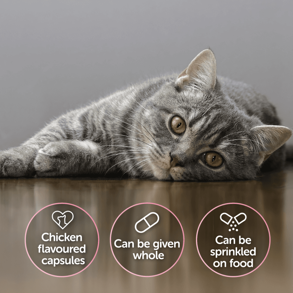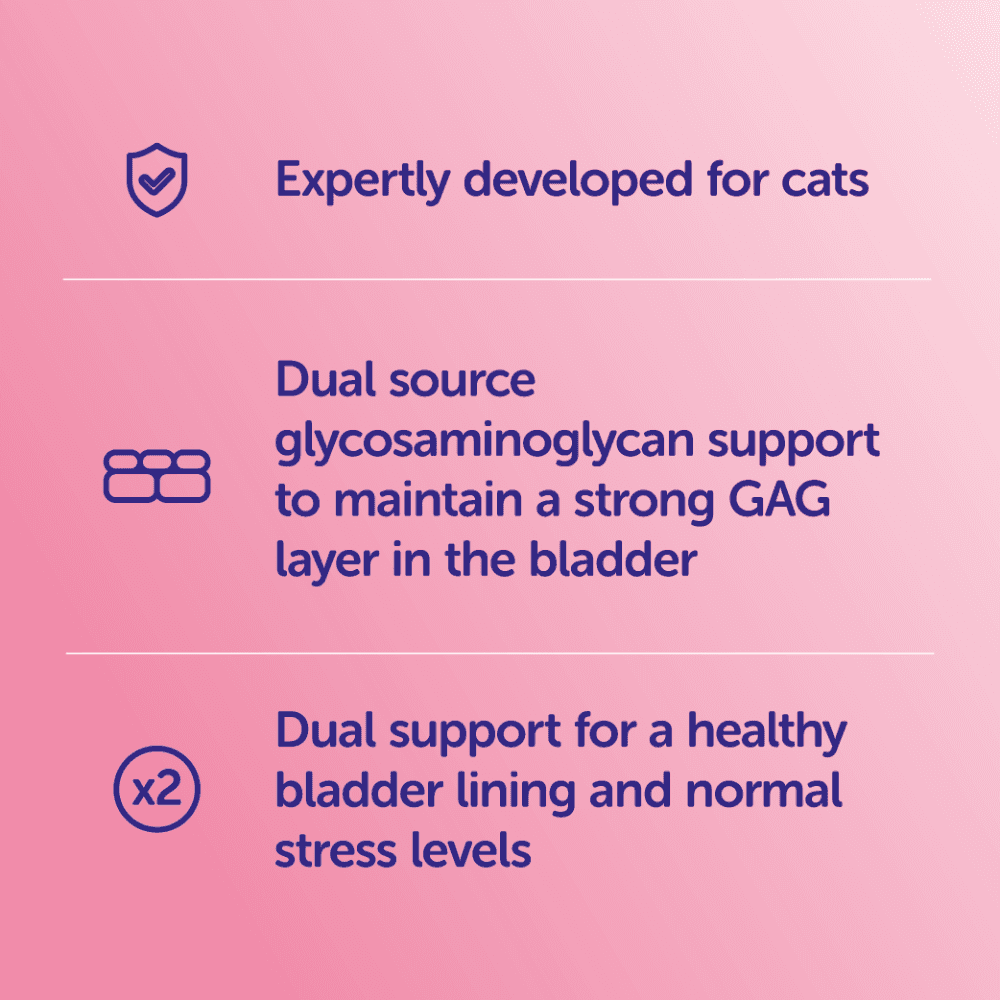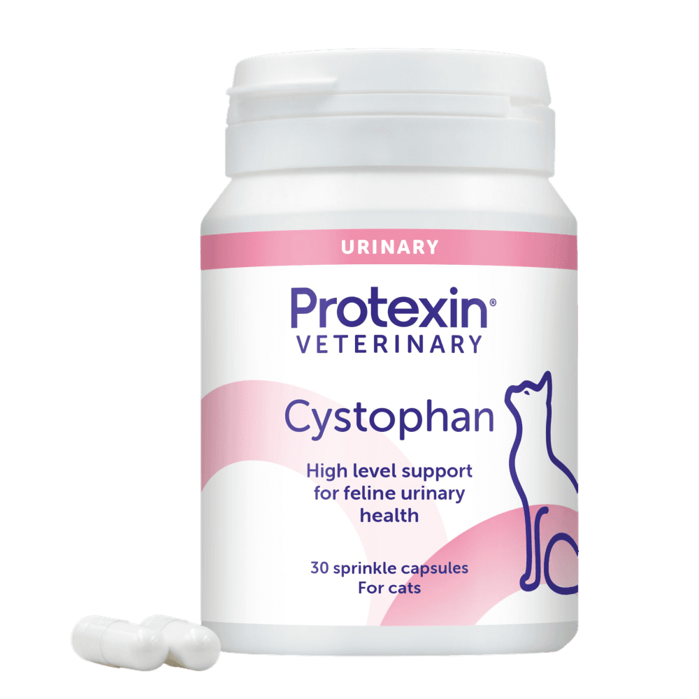 Bladder care with a side of chill-Cystophan for Cats supports a healthy urinary tract and helps your feline friend stay calm when life gets a little too exciting. It's the first supplement of its kind to blend bladder lining support with feel-good serotonin-boosting ingredients, all in one easy-to-give capsule.