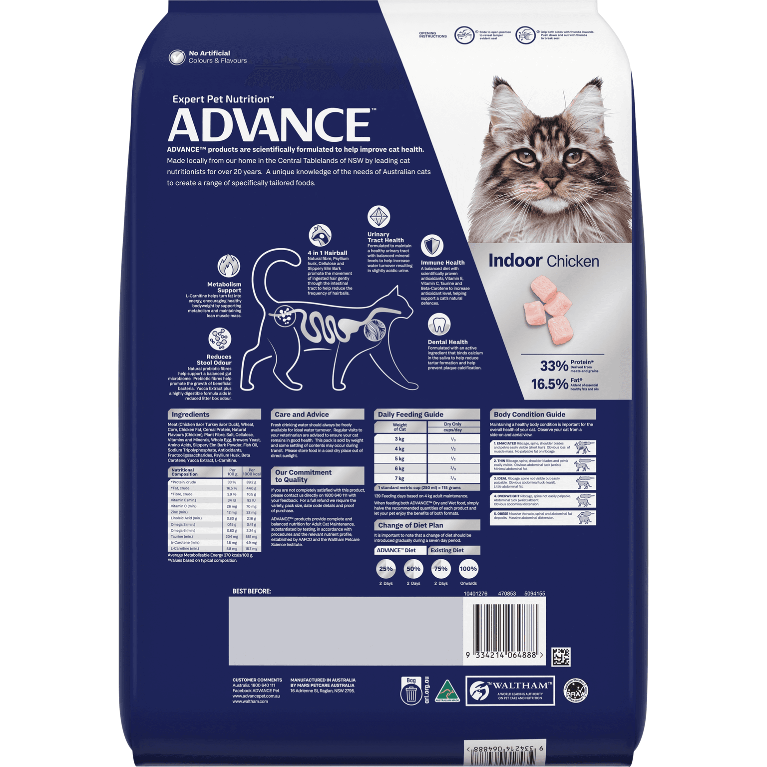 ADVANCE Dry Cat Adult Chicken is a nutritionally balanced food designed to keep your adult cat healthy and happy with a diet that's tailored to them. Packed with nutrients, antioxidants and prebiotic fibres for adult maintenance feeding, they'll have better dental health, a balanced gut and a shiny coat.