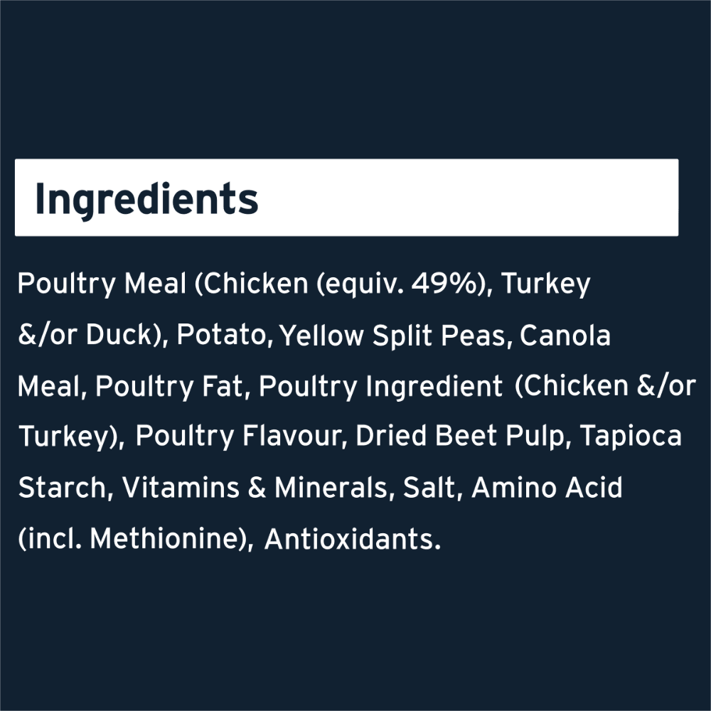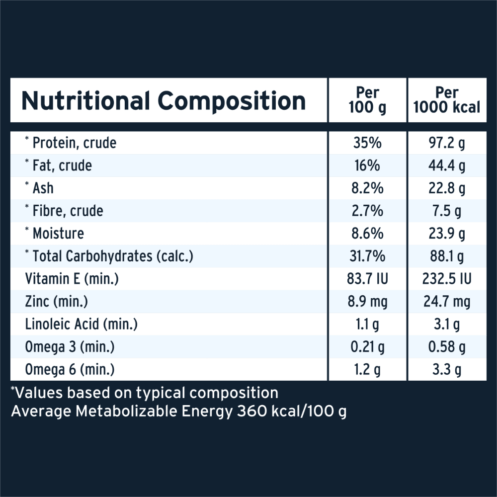 - High quality chicken meal serves as the primary protein source to support lean muscle mass and efficient muscle recovery in active dogs