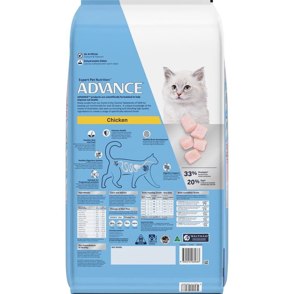 ADVANCE Kitten Dry Cat Food Chicken is specially crafted to provide your growing kitten with the essential nutrients they need for a healthy start in life. This nutrient-rich, formula is packed with high-quality proteins, minerals, and fibres, ensuring optimal growth and development while supporting strong bones and joints.