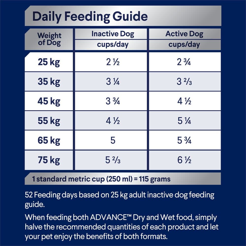 ADVANCE Adult Dog Large Breed Lamb with Rice is a super premium, Australian made, dry dog food specially tailored to support the overall health of large or giant breed adult dogs. Formulated with a unique blend of ingredients, including lamb and rice, this food supports healthy digestion, joint health, skin and coat health, and overall well-being.