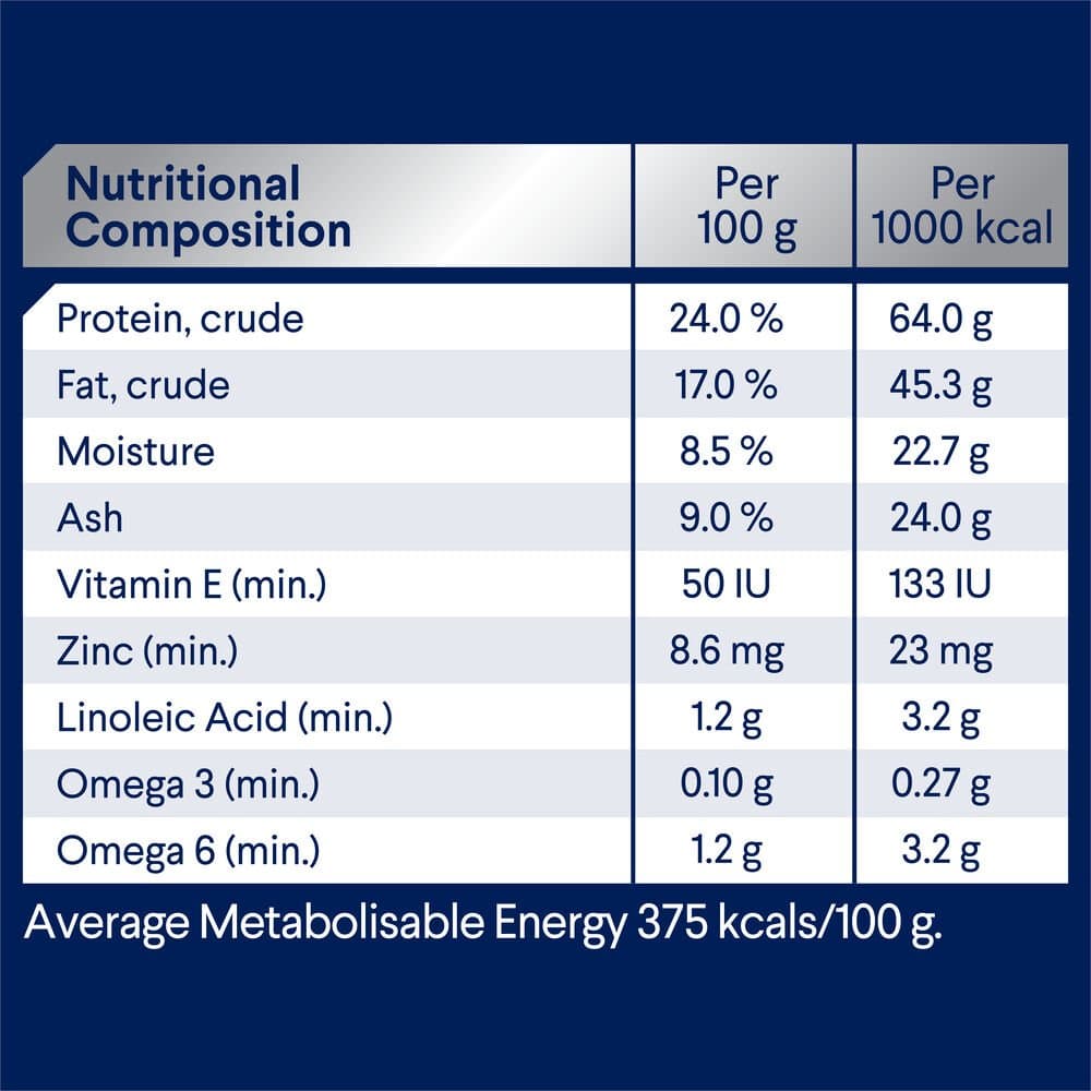 Lamb and/or Sheep Meal, Rice, Rice Flour, Sorghum, Chicken Fat, Chicken Meal, Maize Gluten, Natural Flavour (Chicken), Dried Beet Pulp, Salt, Sunflower Oil, Turkey Meal, Minerals, Inulin, Vitamins, Methionine, Antioxidants.
