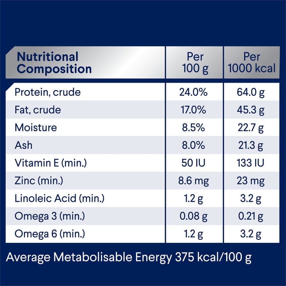 Turkey Meal, Rice, Sorghum, Rice Flour, Chicken Fat, Chicken Meal, Dried Beet Pulp, Natural Flavour (Chicken), Vitamins and Minerals, Salt, Sunflower Oil, Inulin, Antioxidants, Amino Acids (incl. Methionine)