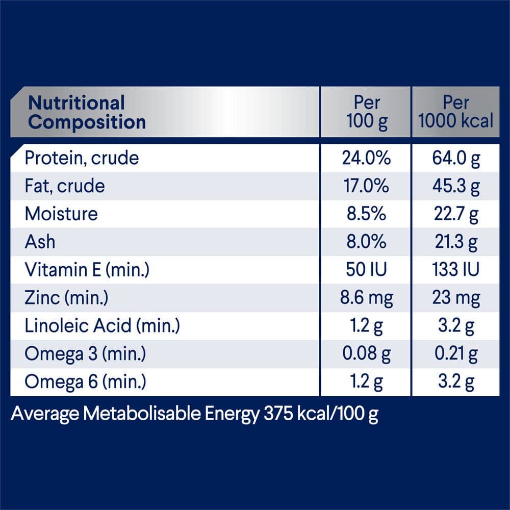 Turkey Meal, Rice, Sorghum, Rice Flour, Chicken Fat, Chicken Meal, Dried Beet Pulp, Natural Flavour (Chicken), Vitamins and Minerals, Salt, Sunflower Oil, Inulin, Antioxidants, Amino Acids (incl. Methionine)