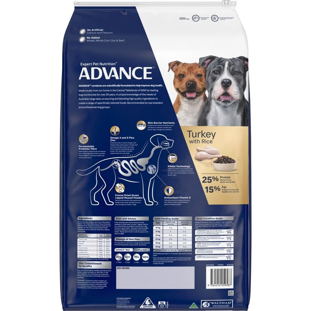 ADVANCE Dog Terrier Medium Turkey with Rice is a premium dry food specifically crafted to meet the unique nutritional needs of medium terriers. This formula blends the rich taste of turkey with easily digestible rice to provide a complete and balanced diet that supports the energetic and enthusiastic nature of your terrier, promoting overall health and wellbeing.