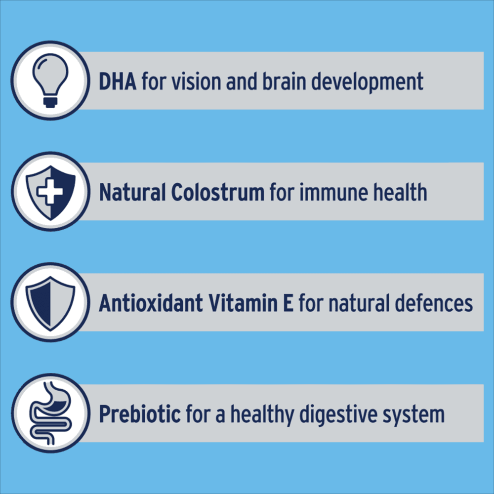 - Enhanced with a unique blend of antioxidants including Vitamin E to help strengthen the developing immune system