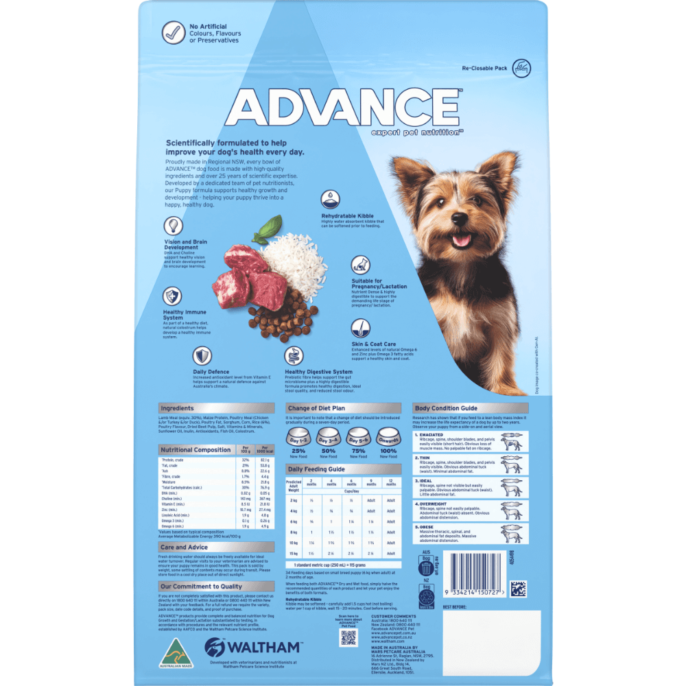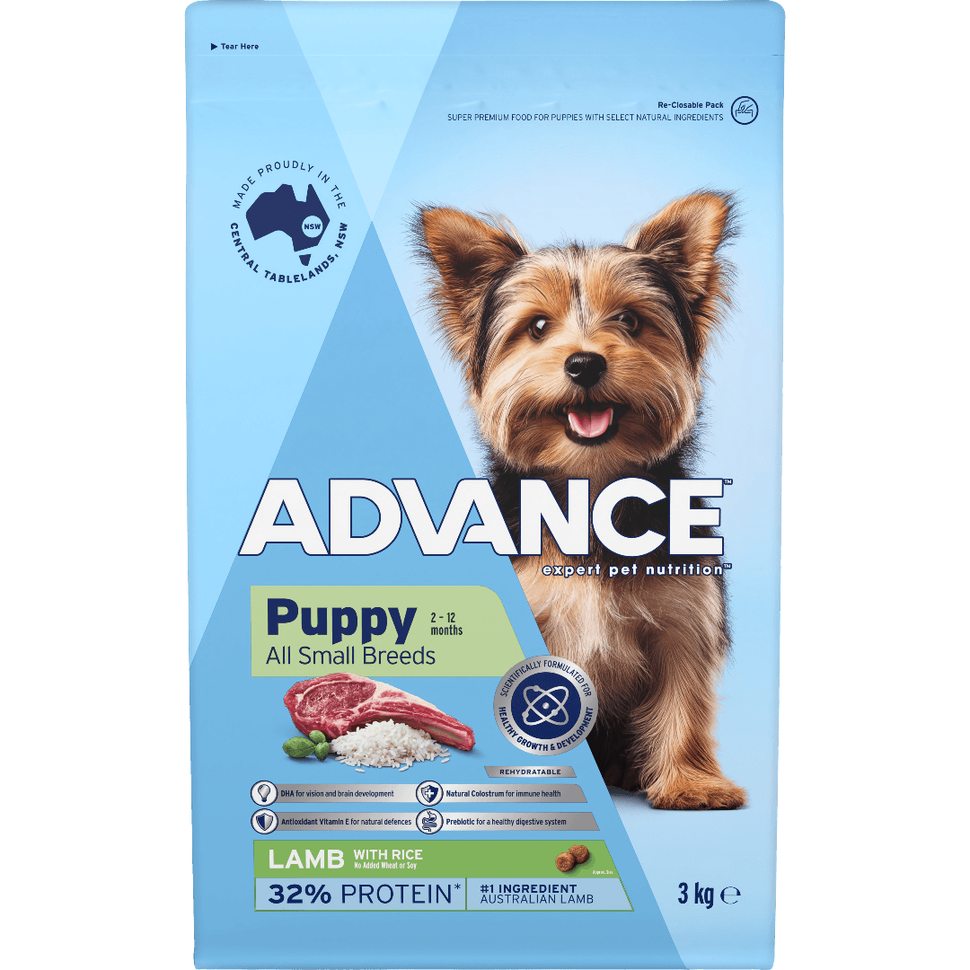 ADVANCE Lamb & Rice Small Breed Puppy Dry Dog Food is a scientifically formulated diet designed to meet the unique nutritional requirements of small breed puppies during their critical growth phase. This premium Australian-made dry food features high-quality lamb as a primary protein source and includes essential DHA to support healthy brain and vision development in your young pet.