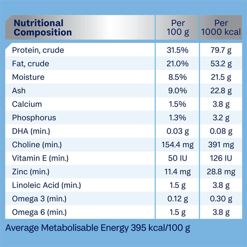 Chicken Meal, Rice, Maize Gluten, Chicken Fat, Sorghum, Dried Beet Pulp, Natural Flavour (Chicken), Sunflower Oil, Turkey Meal, Minerals, Salt, Inulin, Vitamins, Fish Oil, Colostrum, Antioxidants