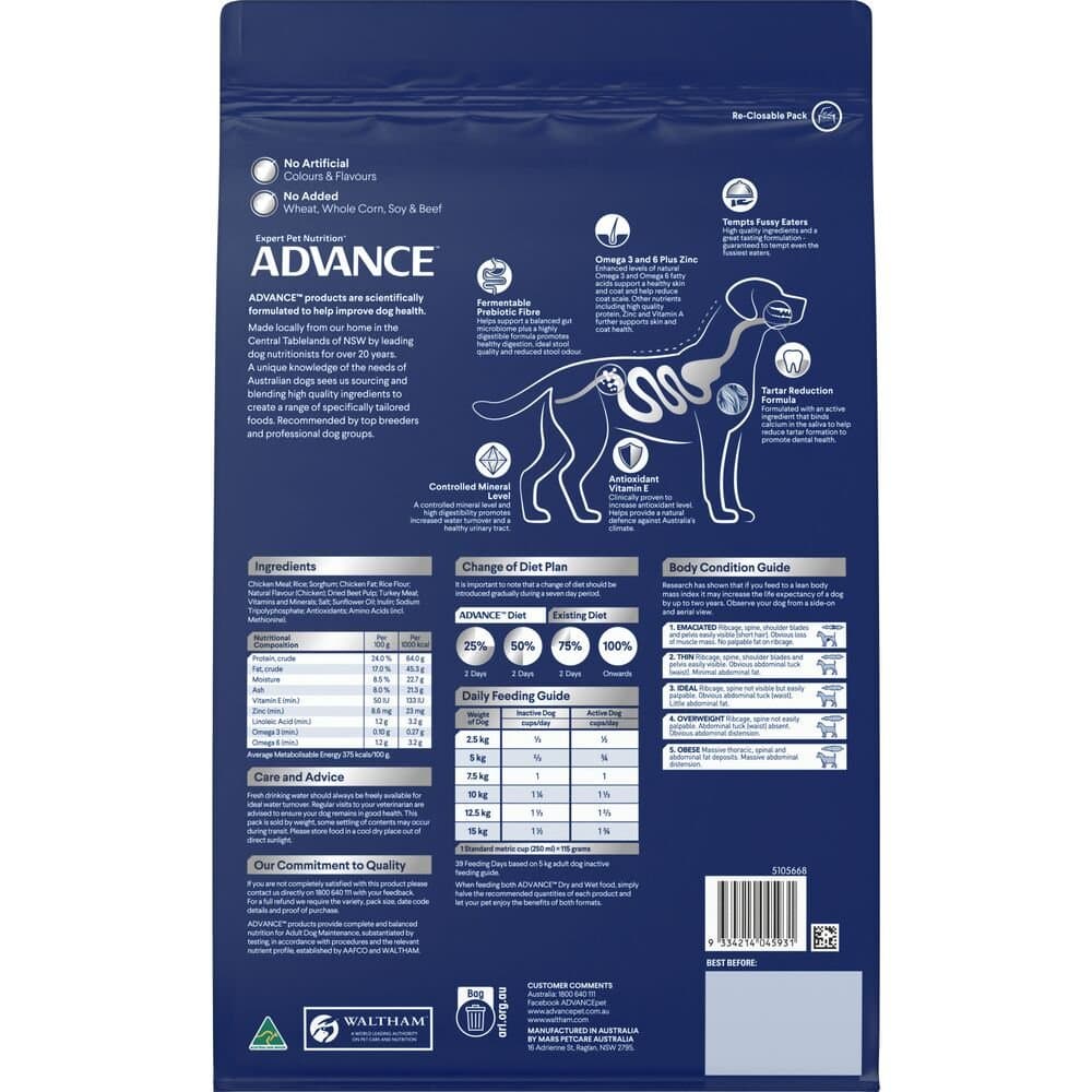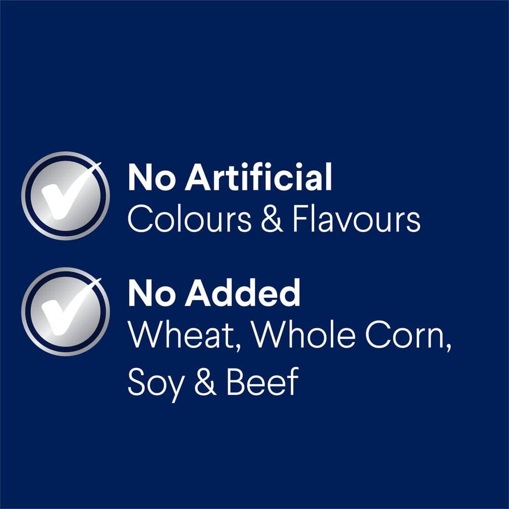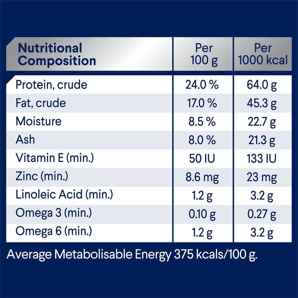 Chicken Meal, Rice, Sorghum, Chicken Fat, Rice Flour, Dried Beet Pulp, Natural Flavour (Chicken), Turkey Meal, Vitamins and Minerals, Salt, Sunflower Oil, Inulin, Sodium Tripolyphosphate, Antioxidants, Amino Acids (incl. Methionine)