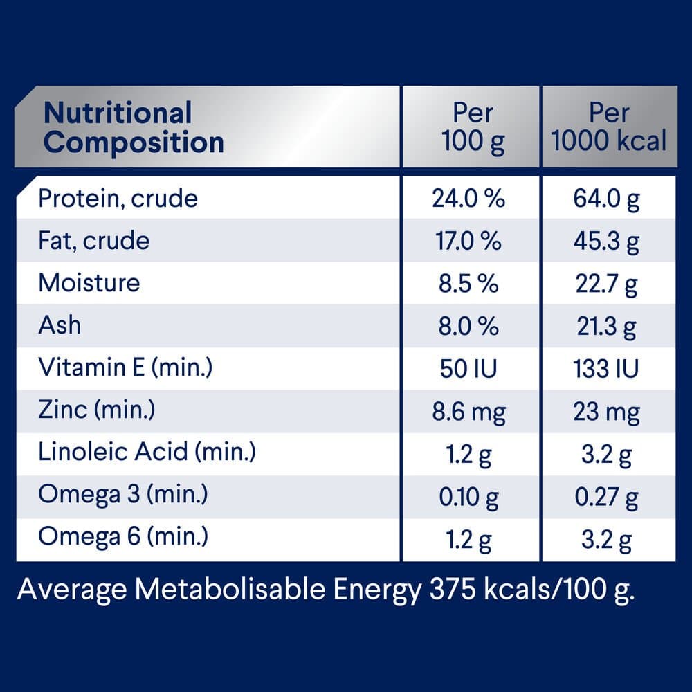 Lamb and/or Sheep Meal, Rice, Rice Flour, Sorghum, Chicken Fat, Chicken Meal, Maize Gluten, Natural Flavour (Chicken), Dried Beet Pulp, Vitamins and Minerals, Salt, Turkey Meal, Sunflower Oil, Inulin, Sodium Tripolyphosphate, Antioxidants, Amino Acids (incl. Methionine)