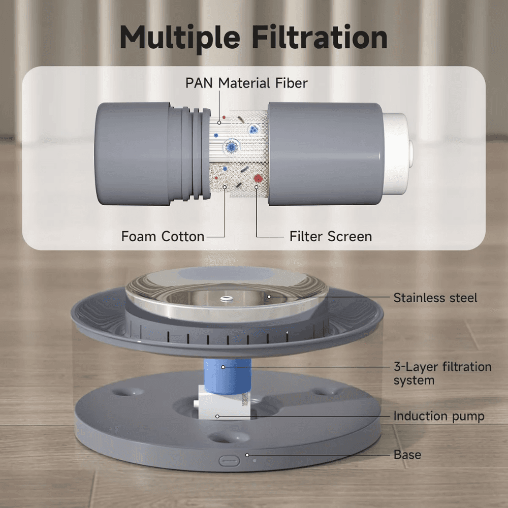 - Use only as directed. Place the fountain on a stable, dry surface away from power points or electrical hazards. Clean regularly and replace filters as instructed to maintain water quality and ensure safe operation for your pet.