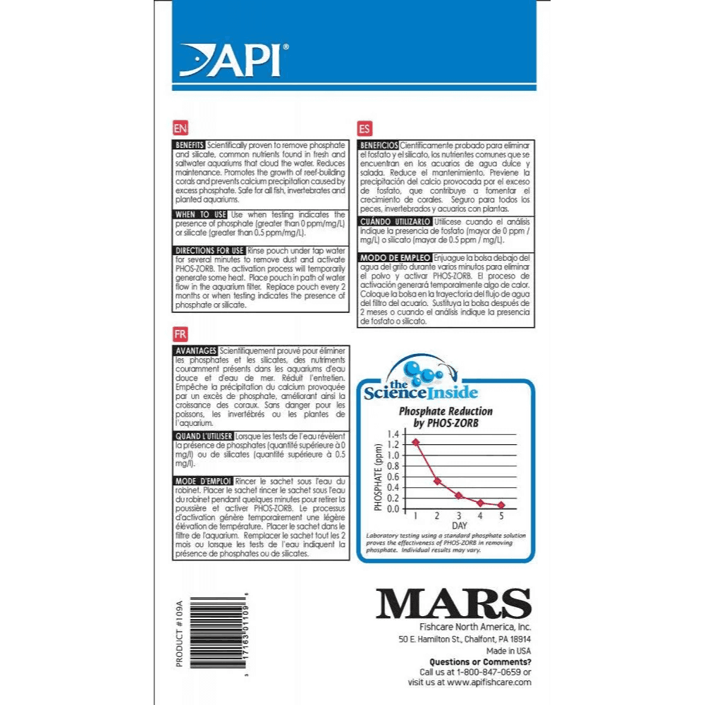 The API® PHOS-ZORB filtration media effectively clears cloudy water and eliminates dirt caused by phosphates, significantly reducing aquarium maintenance. This media targets and removes phosphate and silicate, common nutrients that cloud water and hinder aquatic plant growth, in both fresh and saltwater aquariums.