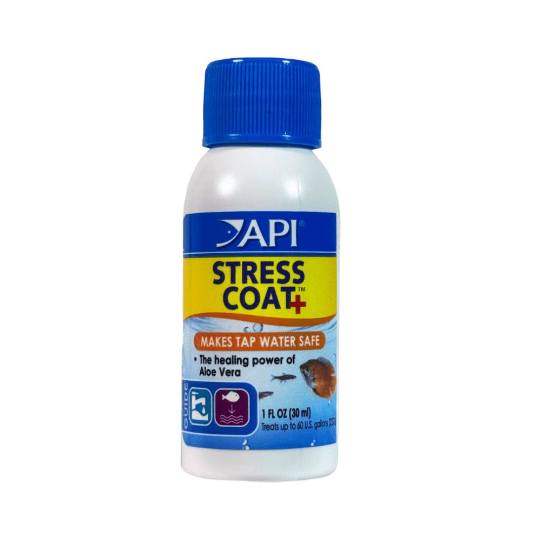 The API® STRESS COAT water conditioner transforms tap water into a safe environment for fish by eliminating chlorine, chloramines, and heavy metals. Enriched with Aloe Vera, it significantly reduces fish stress and promotes the healing of damaged tissue and wounds. This conditioner also minimizes electrolyte loss and strengthens the fish's protective slime coat.