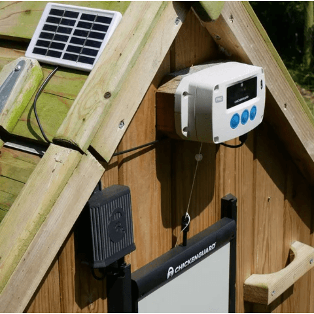 The Bainbridge Chickenguard Pro Combi Kit Solar offers the ultimate automated solution for coop security, powered by the sun for year-round reliability. This all-in-one kit combines a powerful solar-rechargeable controller with an innovative self-locking door, providing complete peace of mind and convenience for any poultry keeper.