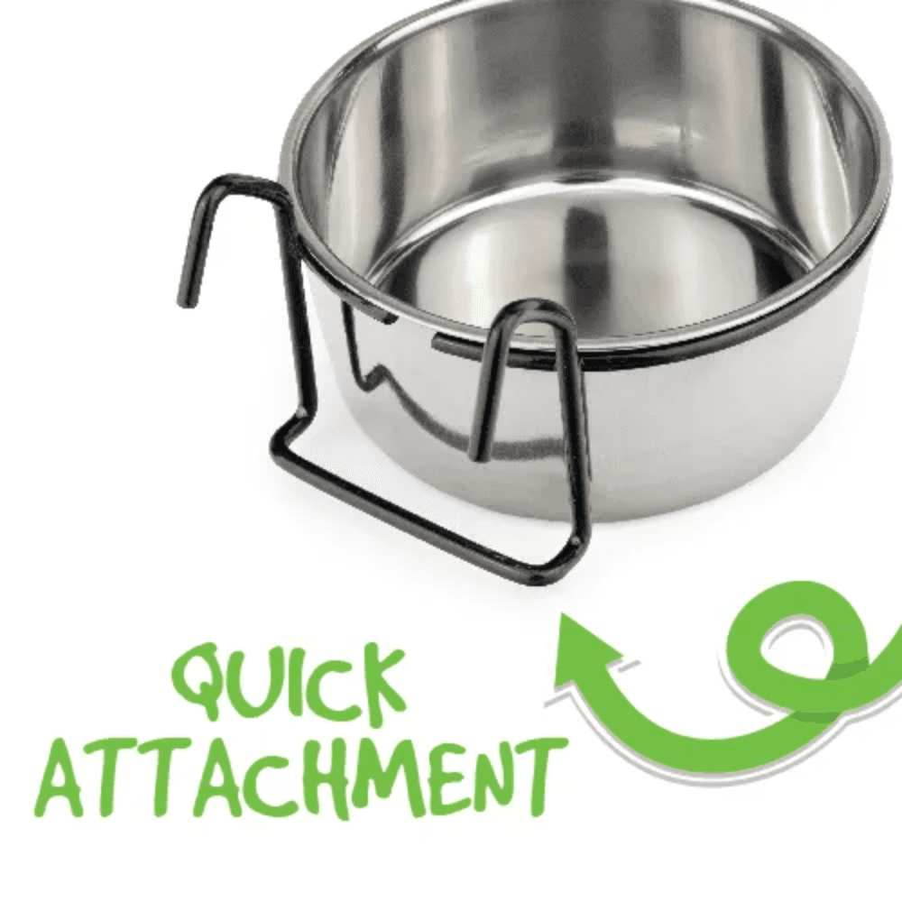 The Bainbridge Coop Cup Stainless Steel With Hook Holder offers a wonderfully simple and convenient way to provide food or water to your caged pet. Featuring an integrated hook design, this cup can be effortlessly hung on most wire cages without the need for clamps or screws.