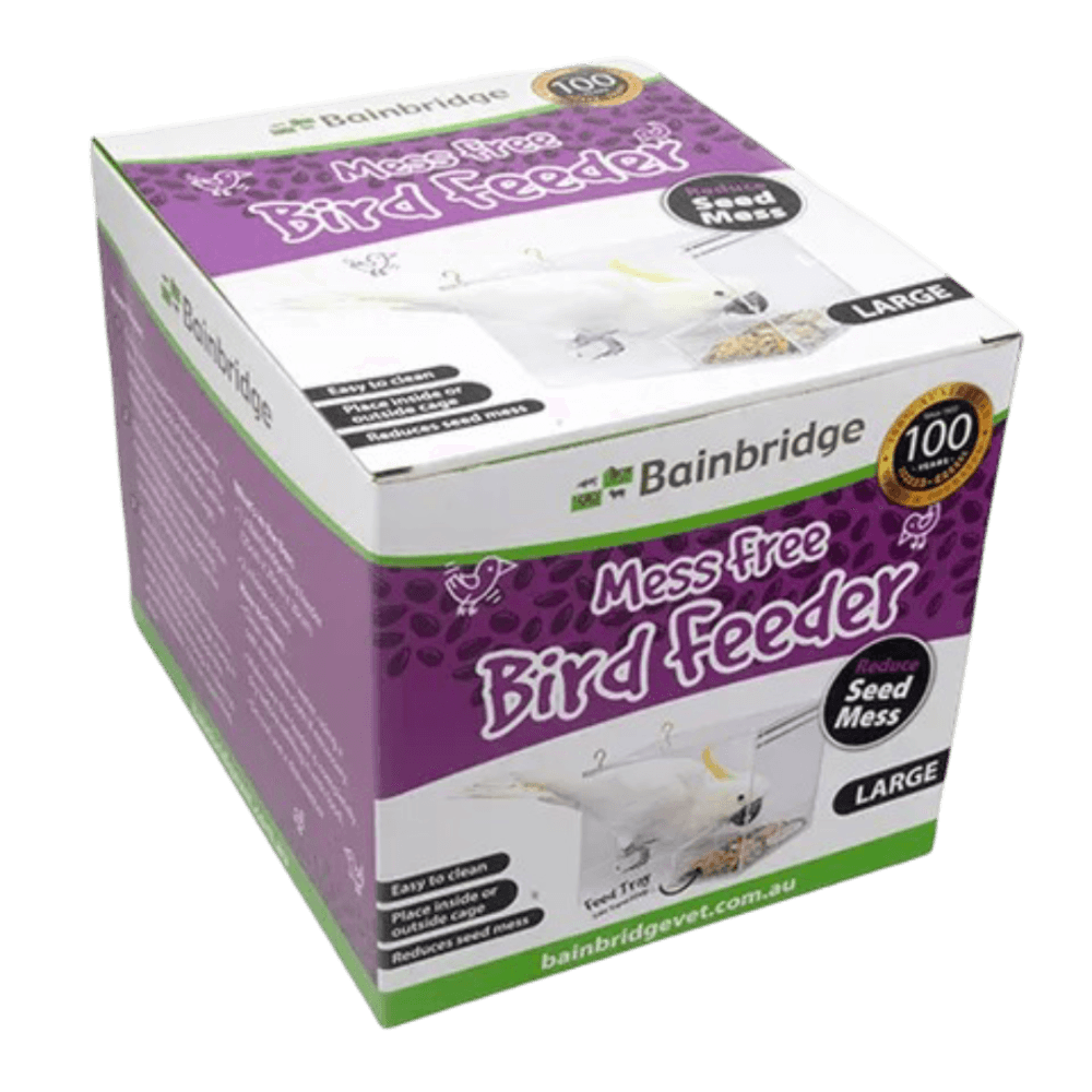 The Bainbridge Mess Free Bird Feeder is the ultimate solution for significantly reducing cage mess while providing a comfortable feeding station for your bird. Thoughtfully crafted from clear acrylic, this feeder effectively contains hulls and dropped seeds, saving you valuable time on daily clean-ups.