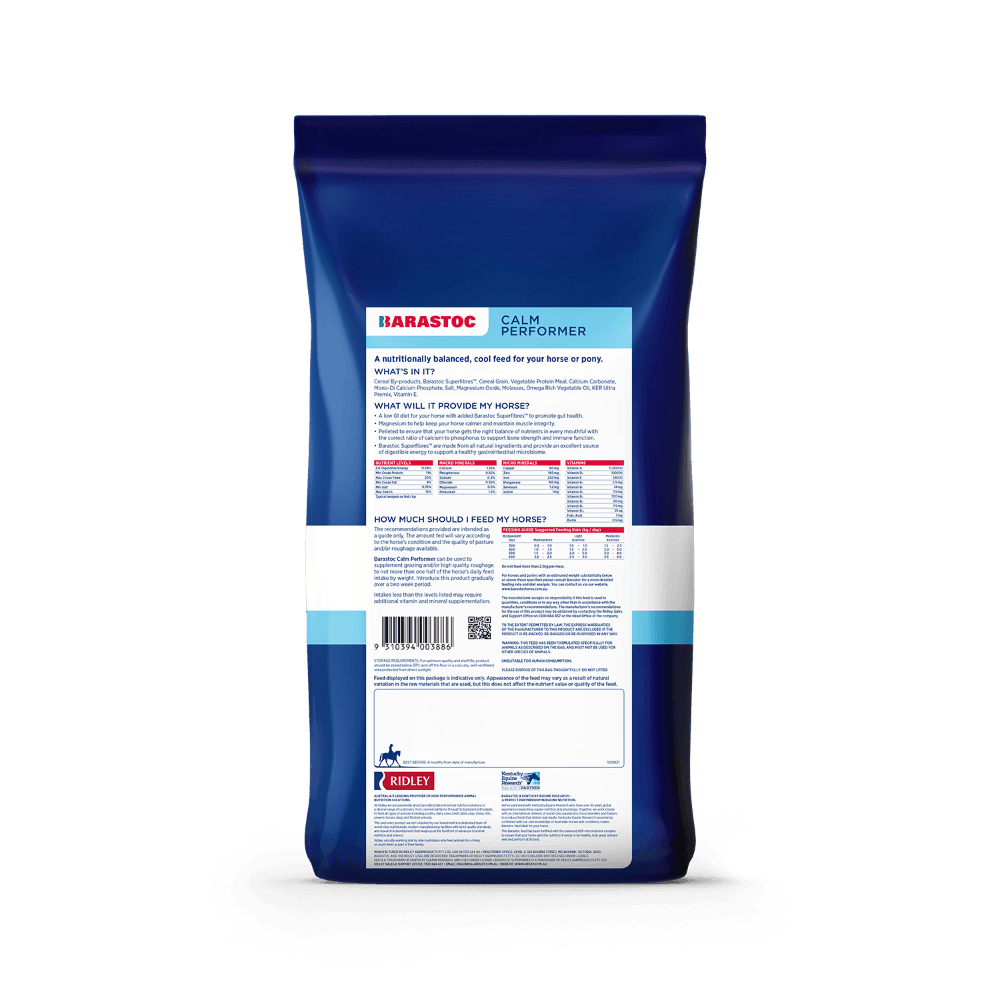 Think of Barastoc Calm Performer as your horse’s everyday power-up—delivering just the right blend of energy and nutrients for low to moderate work. They’ll stay fit, focused and delightfully chilled out, ready to take on the day with a calm confidence.