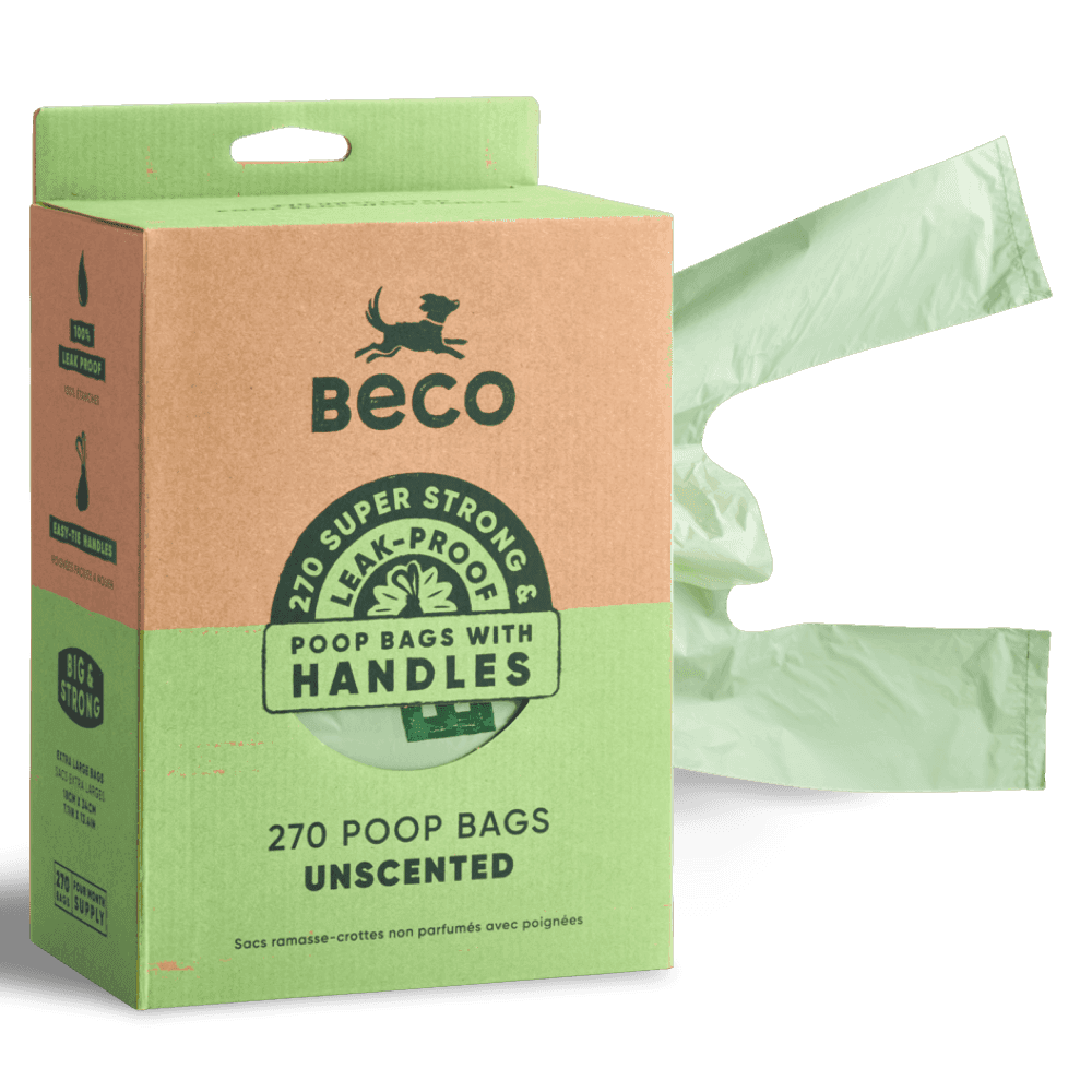 Give your clean-up routine a green makeover with Beco waste bags! Strong, unscented, and partly made from post-consumer plastic materials, these bags are here to make both you and the planet happy. With handy handles for easy tying and carrying, they come in a cardboard box thats as eco-friendly as it is practical. A win for you, your pet, and the Earth!
