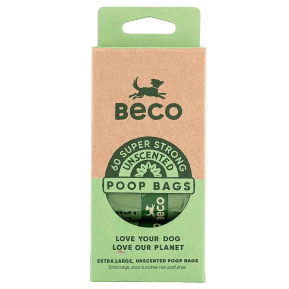 Beco's Super Strong Unscented Poop Bags are the eco-friendly solution to picking up after your pup, big or small. At 22.5 x 33 cm, these bags are extra long and thick, so you don't have to worry about any leaks or accidents. Made from 100% post-consumer recycled materials, they're strong, reliable, and kind to the planet. Plus, every roll comes on a recycled cardboard core, and the packaging is recyclable too - so you can feel good about your purchase!