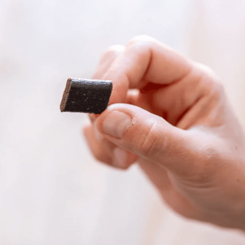 Hero active ingredients per 2.5g chew: 375mg Cranberry for disrupting bad bacteria, 165mg Ascophyllum nodosum for plaque & breath, 96mg Citrus bioflavonoids for bacteria & breath, 24mg Green tea extract for breath & gingivitis. Other natural ingredients: Thyme, sage, egg albumen, blackcurrant, gelatin, tapioca and potato starch, sunflower oil, organic vegetable glycerine, beef bone broth, prebiotic carrot fibre, water, salt, sunflower lecithin, natural hickory smoke powder, and vegetarian flavour.