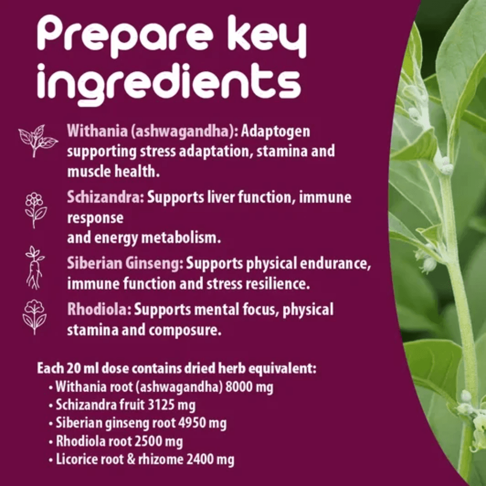 BetaVet Prepare is a premium herbal tonic supporting overall vitality, body condition, and performance in horses. This comprehensive formula combines adaptogenic herbs and plant-based nutrients to maintain digestive, nervous, immune, adrenal, and liver system function