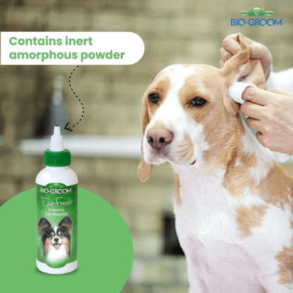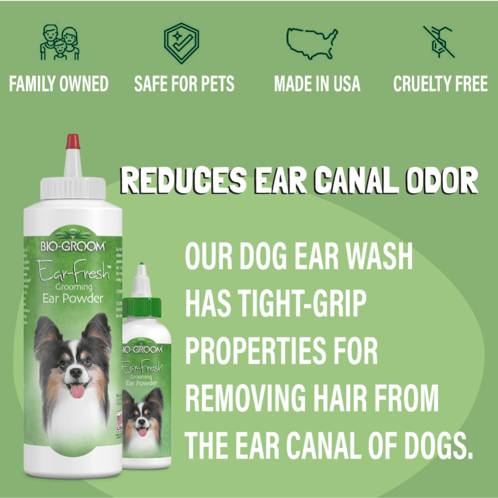 Make ear grooming a breeze with Bio-Groom Ear Fresh Grooming Ear Powder the go-to helper for breeds prone to excess ear hair. Light and gentle, it improves grip for tweezers or forceps so hair removal is smoother and less stressful for your dog. By keeping the ear canal open for better airflow and helping reduce irritation, it supports clean, comfortable, and healthy ears every time you groom