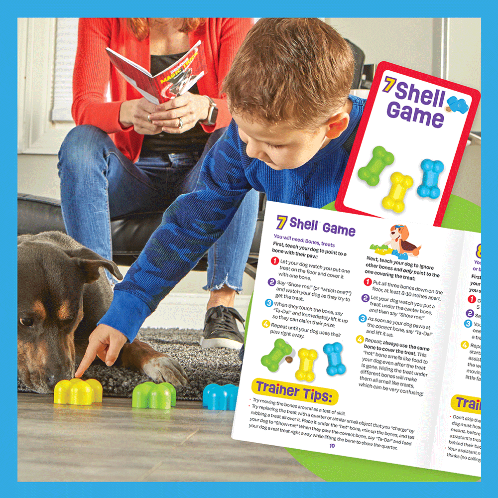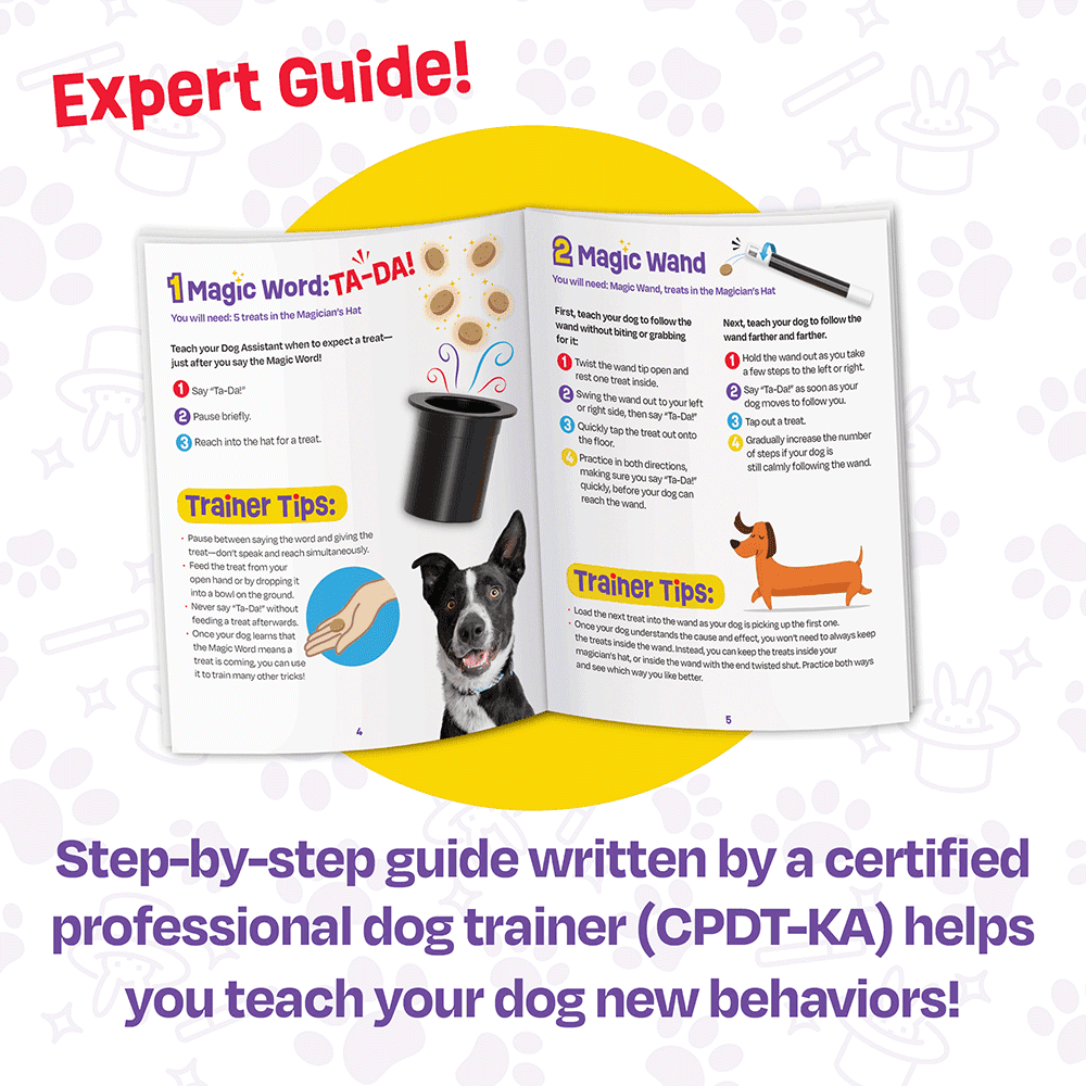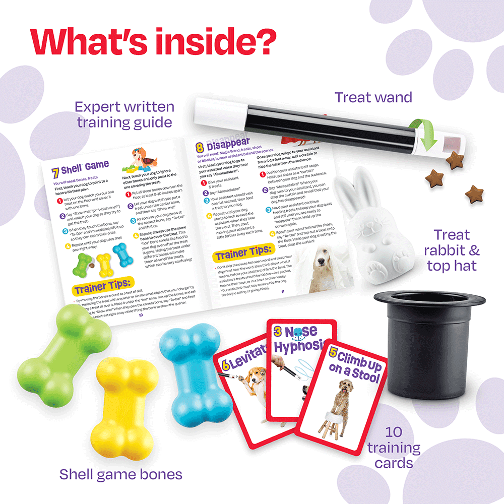 - Features‚treat wand, shell game bones, treat rabbit and top hat, and training cards