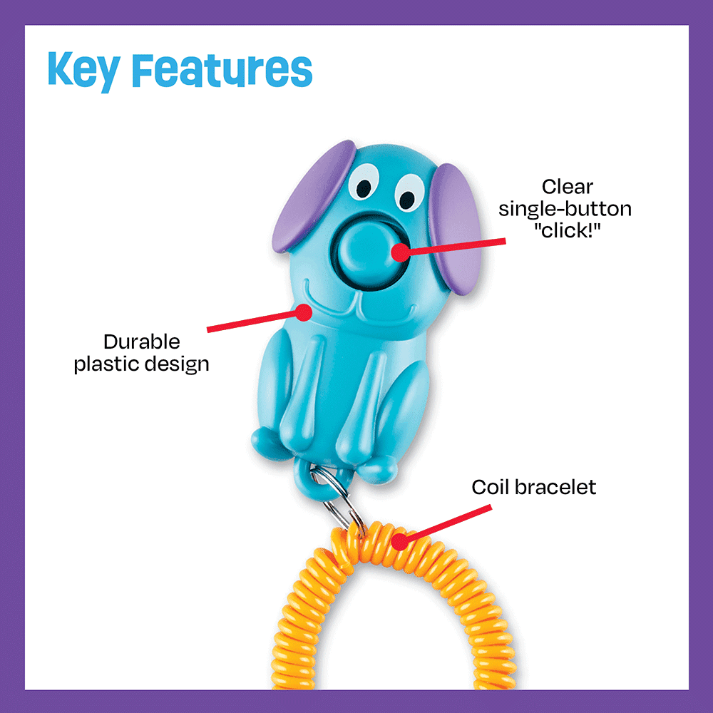 BrightkinsSmarty Pooch Training Clicker DoggyBrightkins pet accessories are designed to keep your pet busy both physically and mentally. This clicker comes in a quirky shape and can help teach tricks or build on existing ones. They can also help you better communicate with your pup to improve your bond. This clicker has a coil bracelet and durable design so it can come out the house with you.