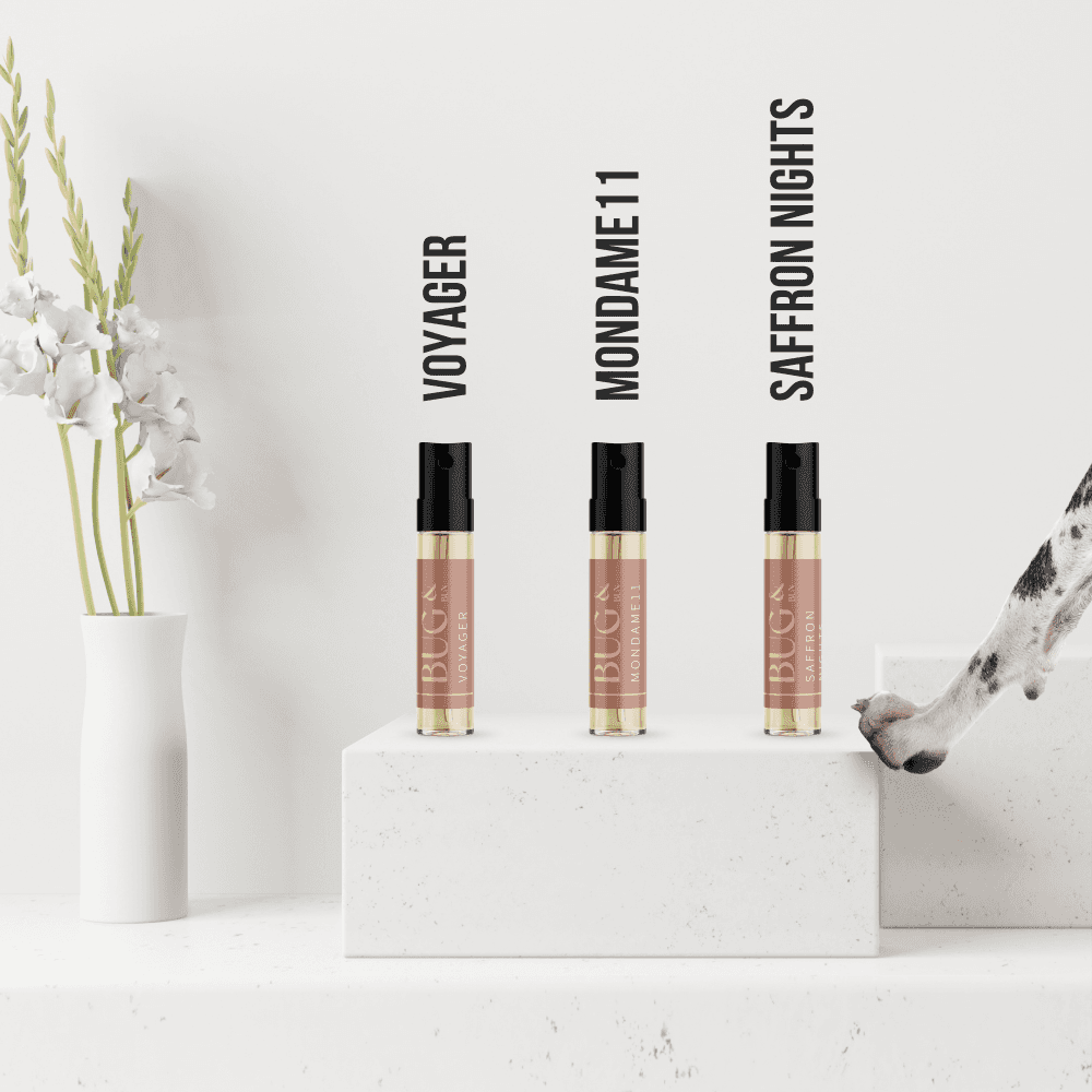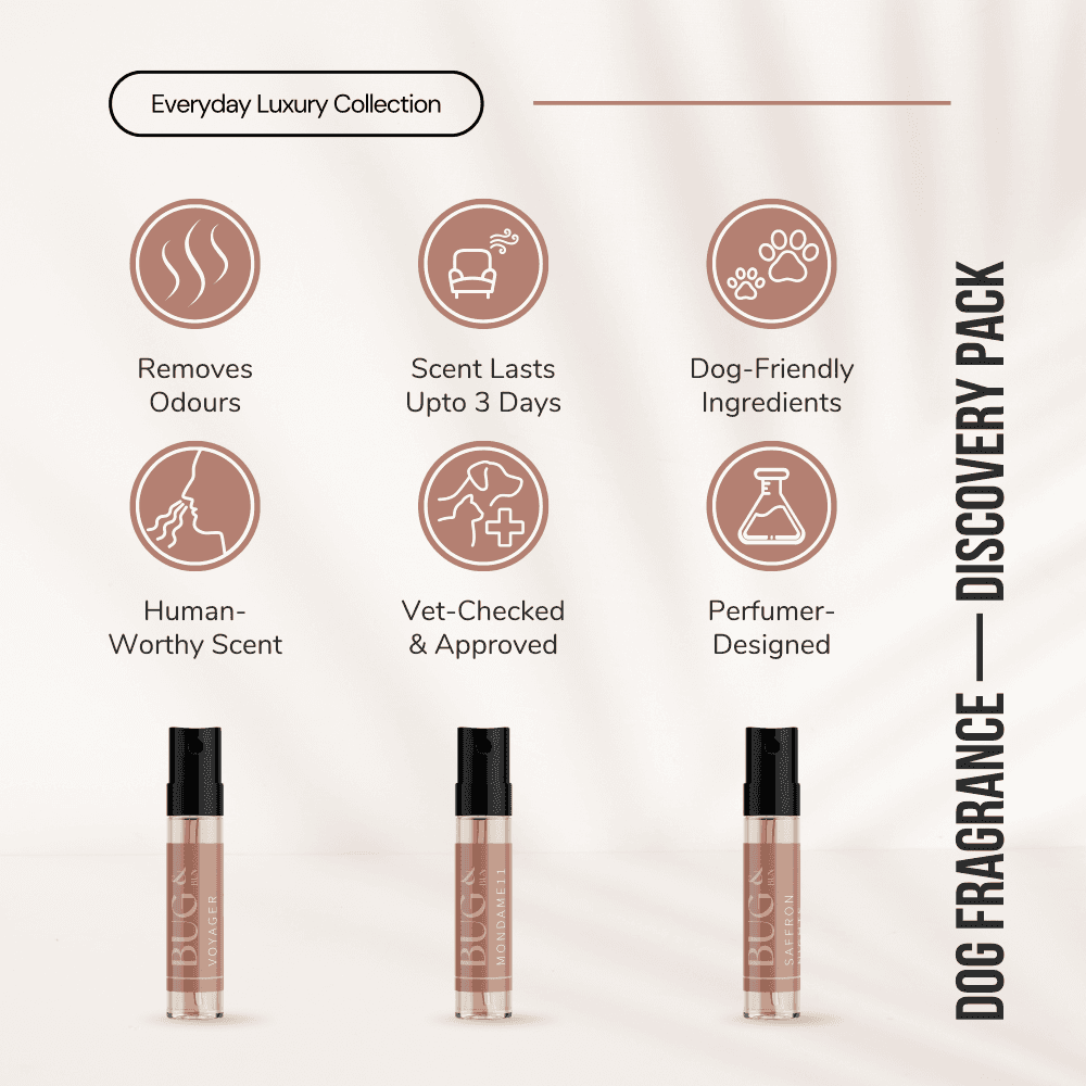 Aqua (filtered water), Natural Solubiliser (blends water & oil together), Dog Parfum* (Fragrance), Natural Preservative (for maximum longevity), Vegetable Glycerin (for a silky-smooth coat).