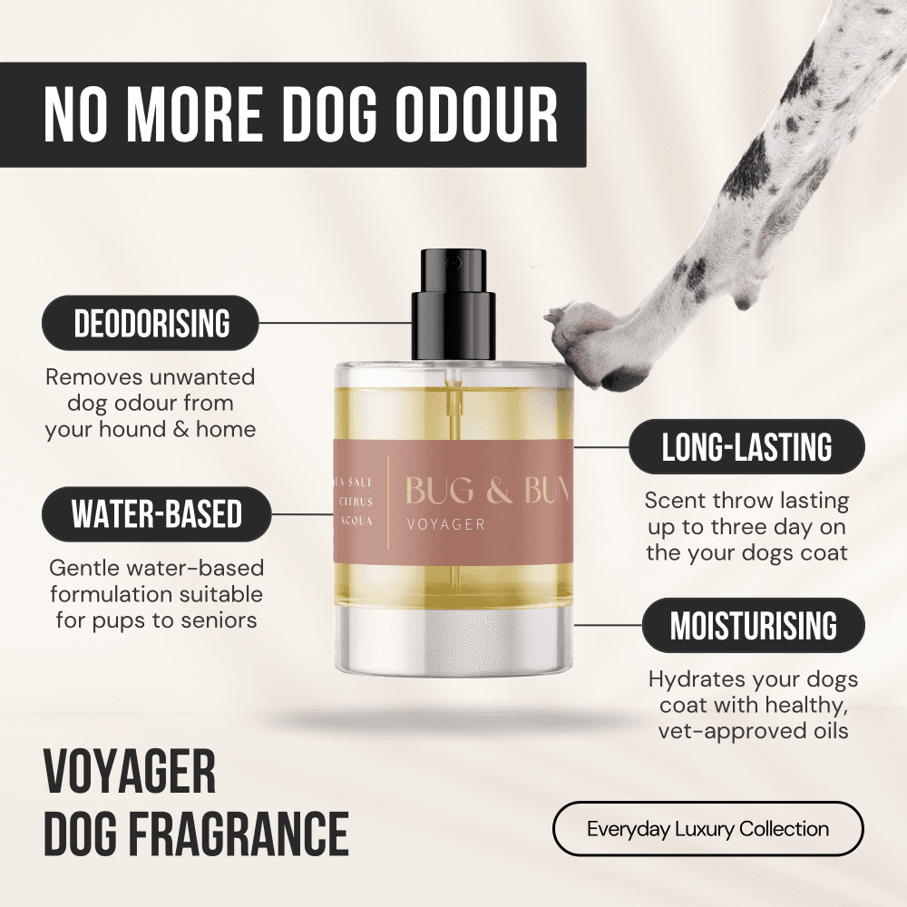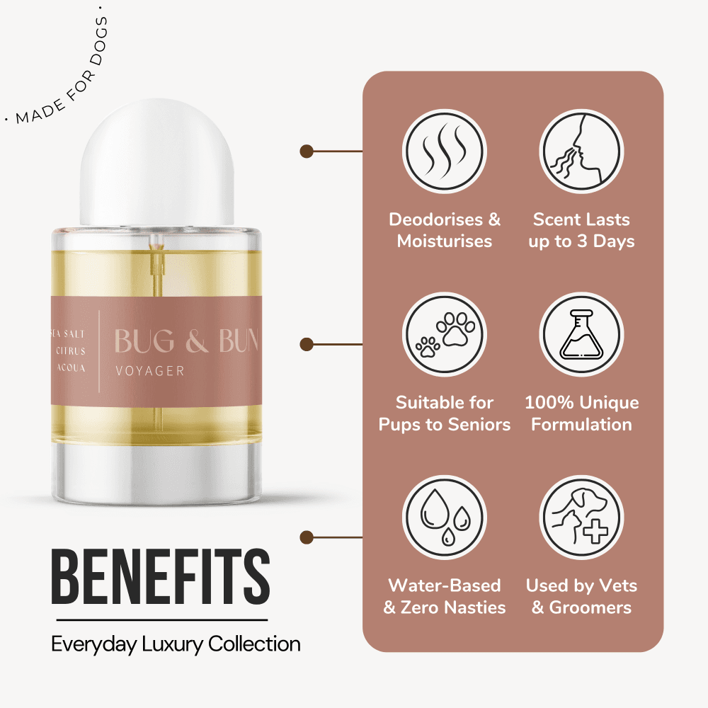 Aqua (filtered water), Natural Solubiliser (blends water & oil together), Parfum* (Fragrance), Natural Preservative (for maximum longevity), Vegetable Glycerin (for a silky-smooth coat).