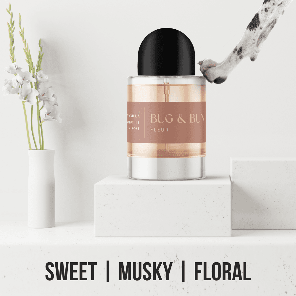 Introducing Fleur by Bug & Bun, the 100% natural dog fragrance that wraps your pup in a serene, soothing aromatherapy experience. Part of the 'Eau de Natural' collection, Fleur is a delicate blend of musky vanilla, floral notes, and calming essential oils. With its heart of Damask Rose and German Chamomile, this fragrance is designed to relieve stress and tension, creating a peaceful atmosphere for your furry friend. Vanilla and Cedarwood base notes add a touch of balance, making Fleur the perfect scent to deodorise your dog and bring a sense of calm and relaxation to both your pup and your home.