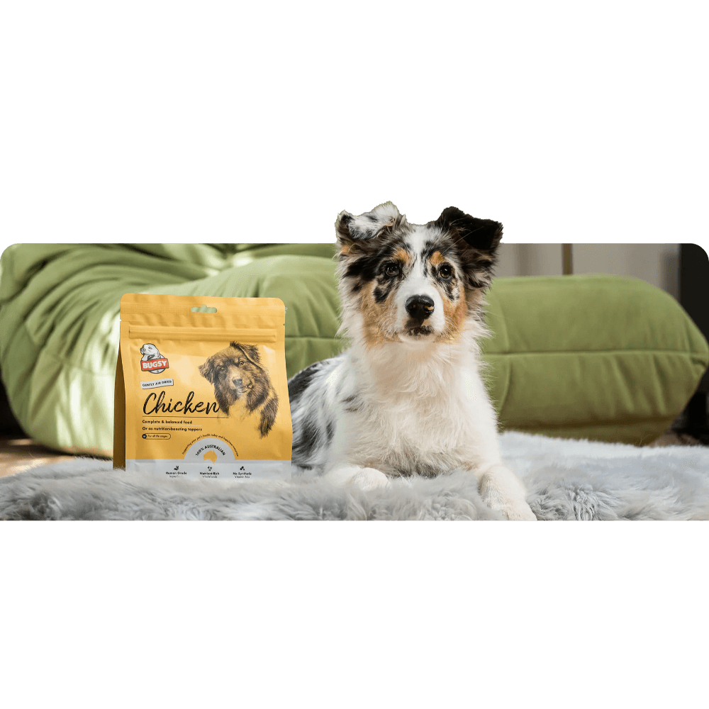 Bugsy Gently Air Dried Chicken Dry Dog Food is a complete, balanced meal made with 98% human-grade free-range Australian chicken, giving your dog a naturally nourishing diet for all life stages. This nutrient-dense recipe supports immunity, joints, skin & coat health thanks to its rich mix of whole chicken, gut-friendly veggies, antioxidants, and omega fatty acids. Perfect as a full meal, a high-value treat, or a topper, it delivers raw-style goodness in a safe, tasty, air-dried format your dog will happily crunch into.