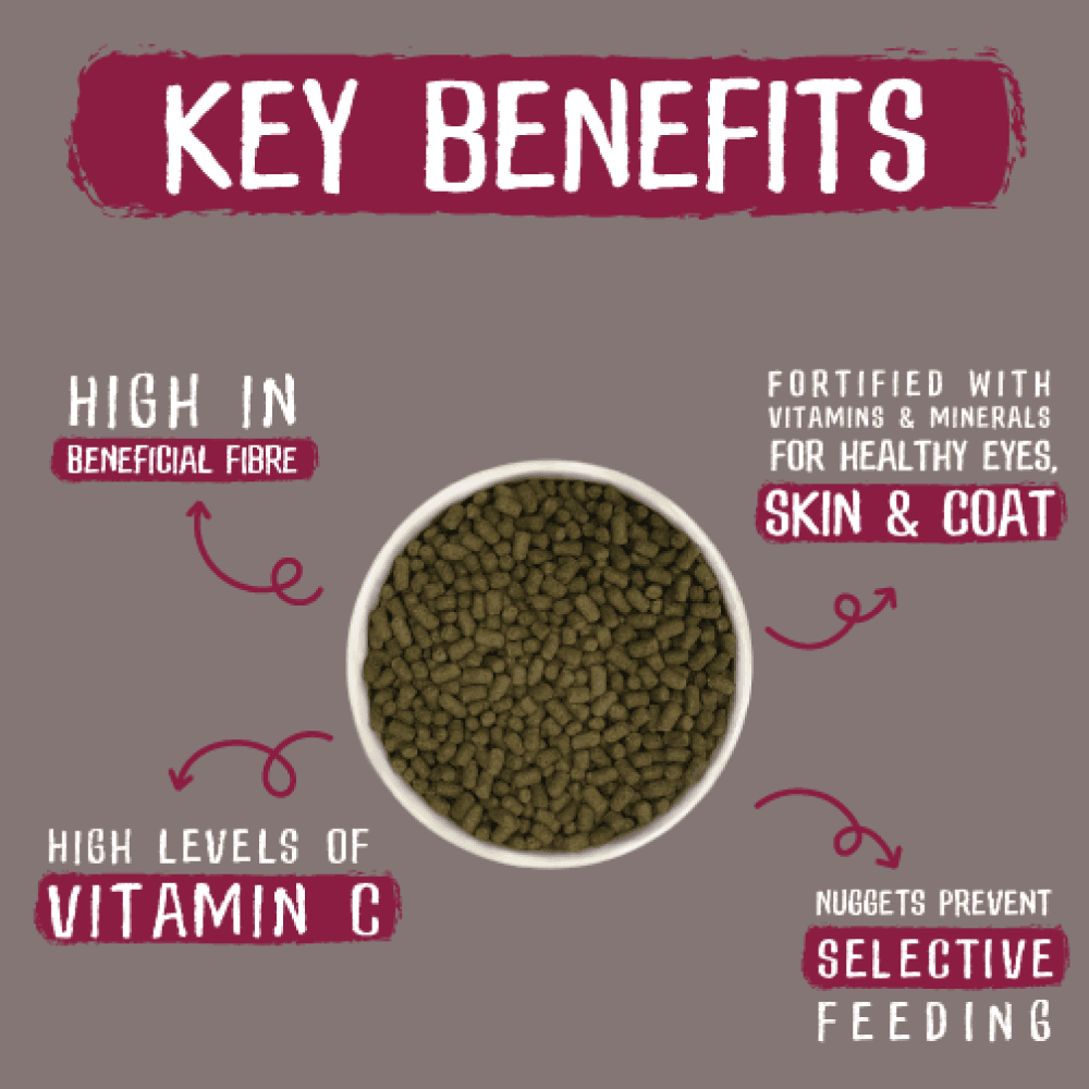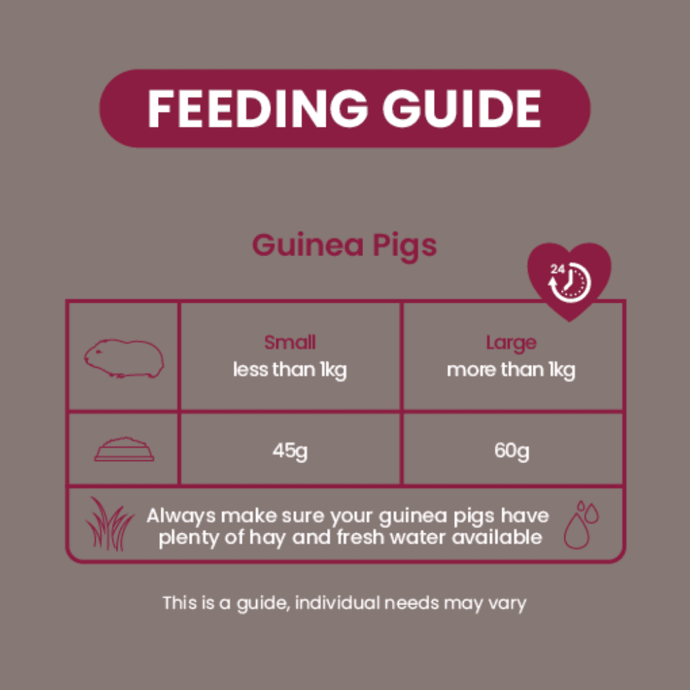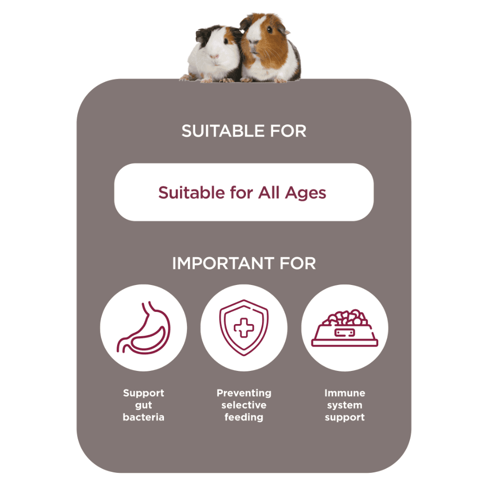 Formulated with vets and nutritionists, these high-quality recipes provide the right balance of vitamins and minerals to supplement your guinea pig's diet, promoting happiness and health. Designed for indoor guinea pigs, they ensure pets receive the same nutrients they would find grazing in the wild.