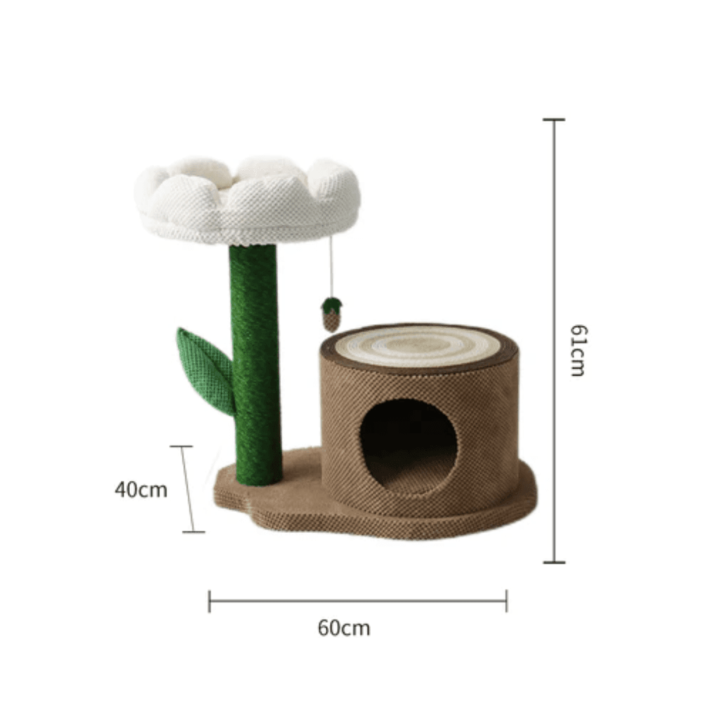 Catio Log Cat House With White Camelia Cat Scratching Tree