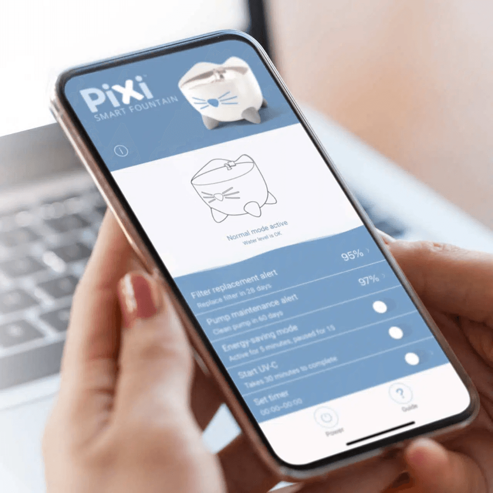 The Catit PIXI Smart Drinking Fountain is the ultimate hydration station for your feline friend. Combining a sleek design with innovative technology, this fountain keeps your cat's water clean, fresh, and appealing. Featuring UV-C clarification and triple-action filtration, it ensures that your cat's drinking water is free from impurities, odours, and harmful minerals. it's Perfect for the cat who deserves the best and for owners who want a hassle-free, tech-savvy way to keep their pet hydrated!