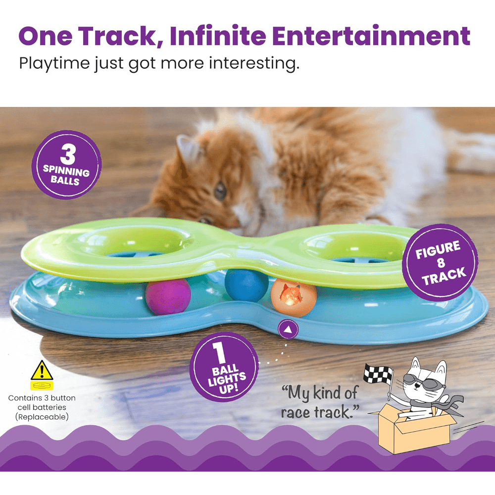Engage your cat's natural instincts with the Catstages Infinity Ball Track Interactive Cat Toy. Catstages designs innovative toys understanding feline behaviour, promoting active play. This figure-8 track offers endless batting fun, keeping your curious cat mentally stimulated and physically active.