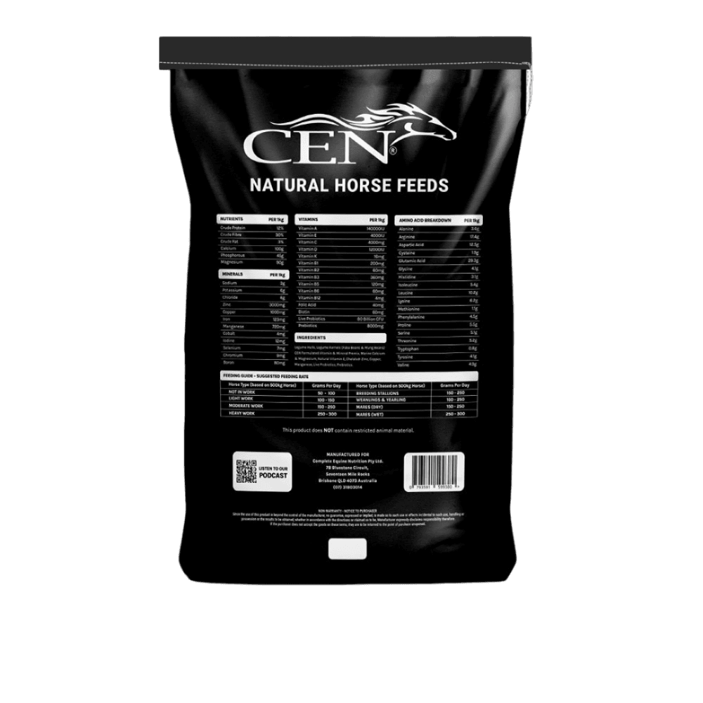 Legume Hulls, Legume Kernels, (Faba Beans & Mung Beans) CEN Formulated Vitamin & Mineral Premix, Marine Calcium & Magnesium, Natural Vitamin E, Chelated Zinc, Chelated Copper, Chelated Manganese, Live Probiotics (Micro-encapsulated Saccharomyces Cerevisiae) &: Prebiotics