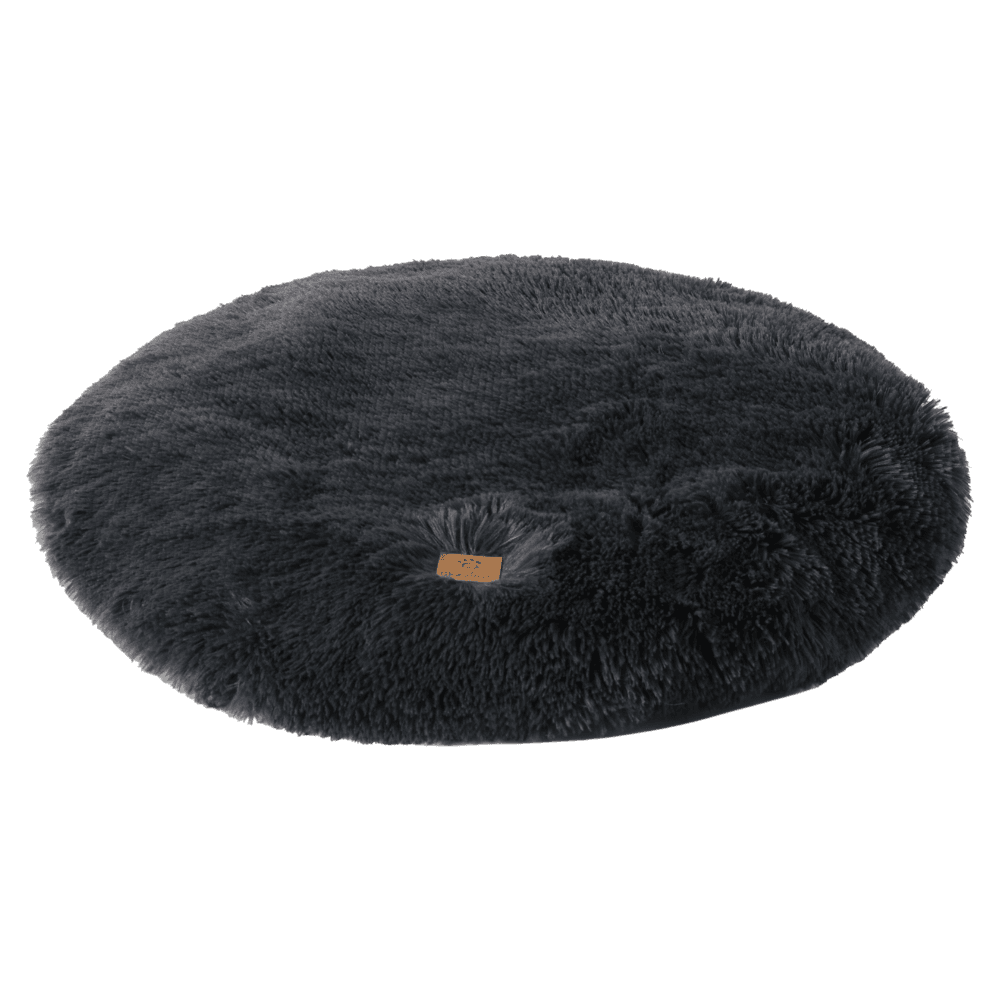 Charlies Round Shaggy Faux Fur Calming Pet Mat Charcoal