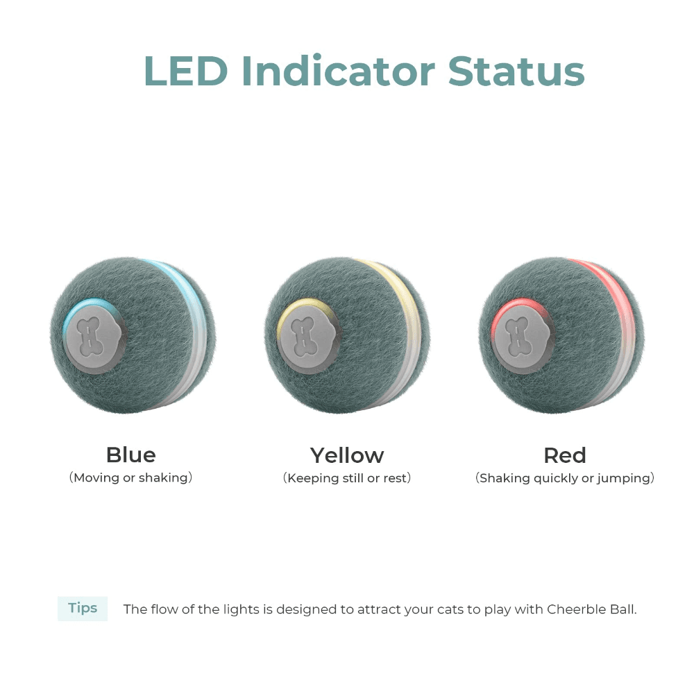The Cheerble M1 Mini Cat Ball Green is an interactive, self-rolling toy designed to keep your cat engaged and active. With its synthetic fiber cover and bright LED lights, it stimulates your cats natural hunting instincts, providing hours of entertainment.