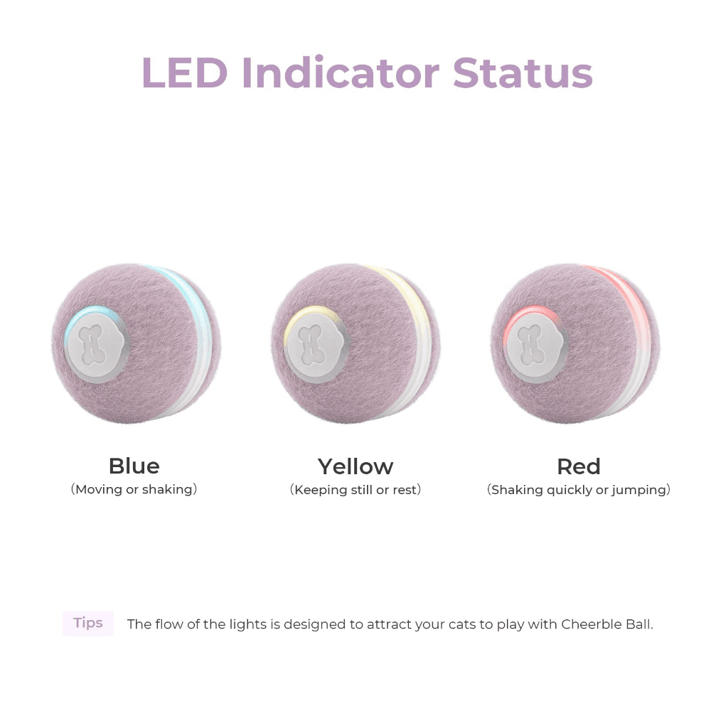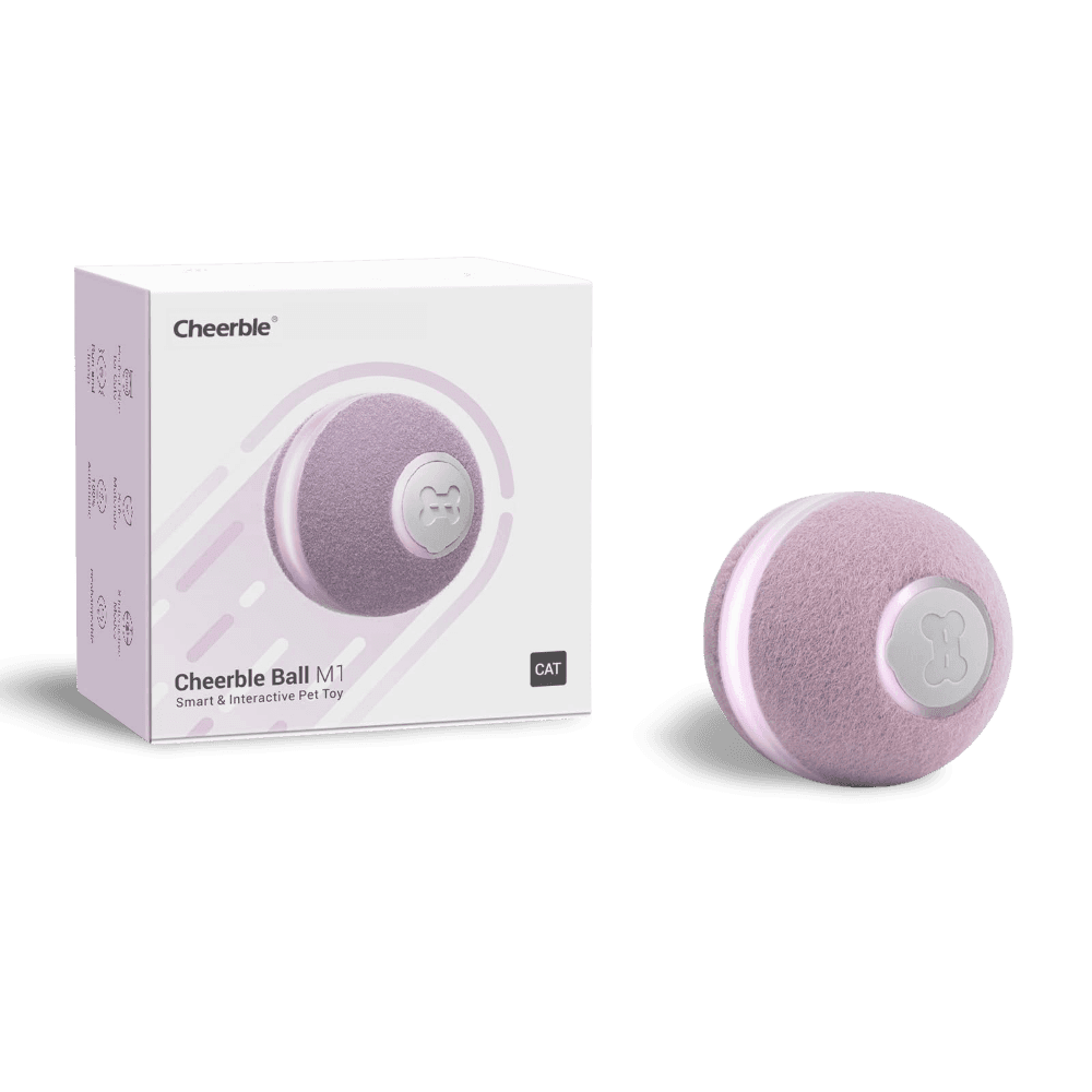 The Cheerble M1 Mini Cat Ball Purple is an interactive, self-rolling toy designed to keep your cat engaged and active. With its synthetic fiber cover and bright LED lights, it stimulates your cats natural hunting instincts, providing hours of entertainment.