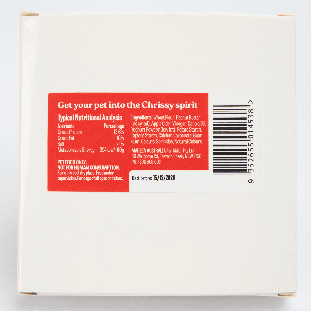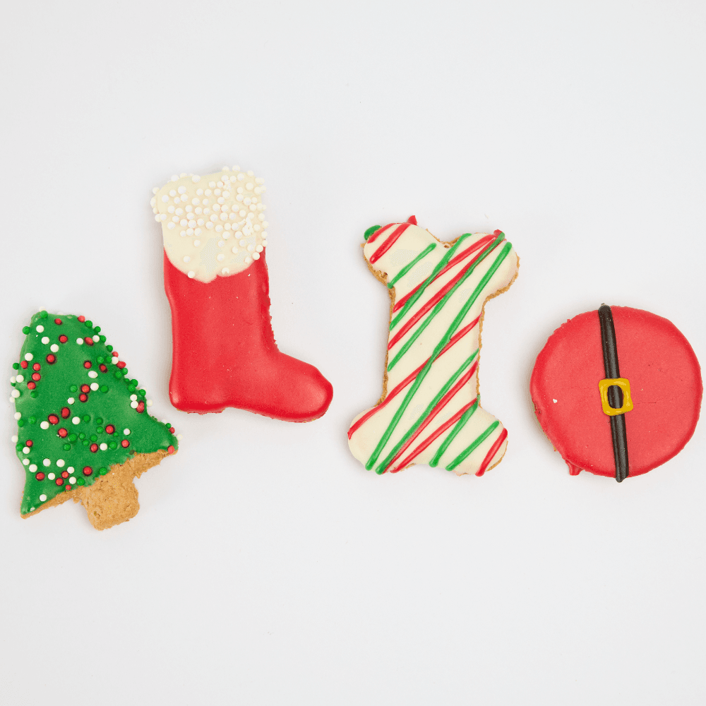 - Containing 1 x Christmas Tree, 1 x Christmas Bone, 1 x Santa Belt, 1 x Santa Boot cookies
