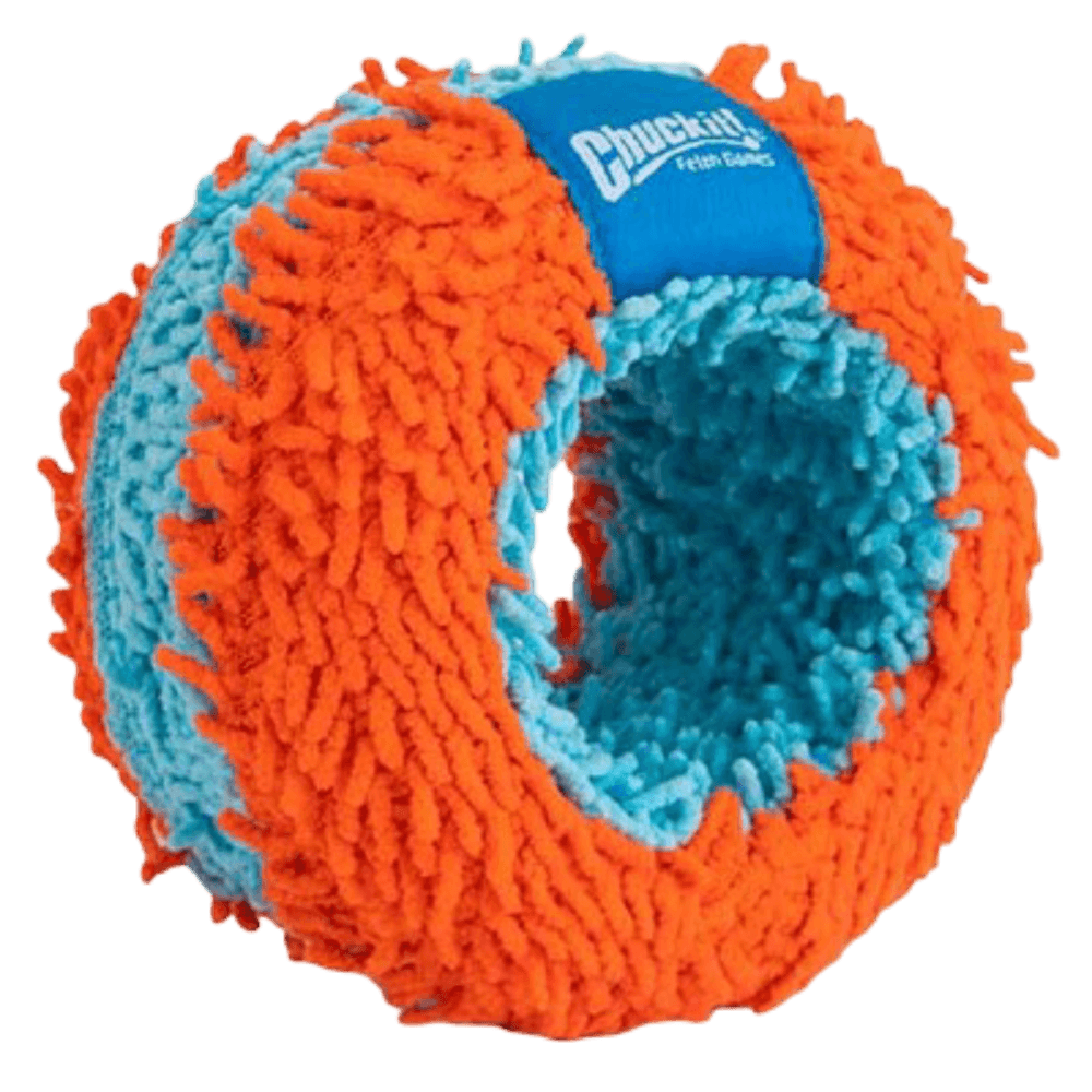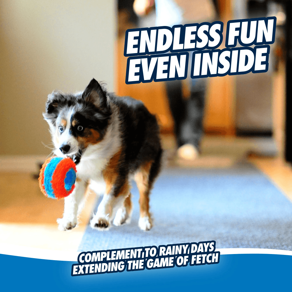 Turn rainy days into play days with the Chuckit! Indoor Roller Dog Toy. Wrapped in soft chenille and powered by Bounceflex Core Technology, it glides down hallways and stairs without scuffing walls or furniture-perfect for indoor fetch sessions.